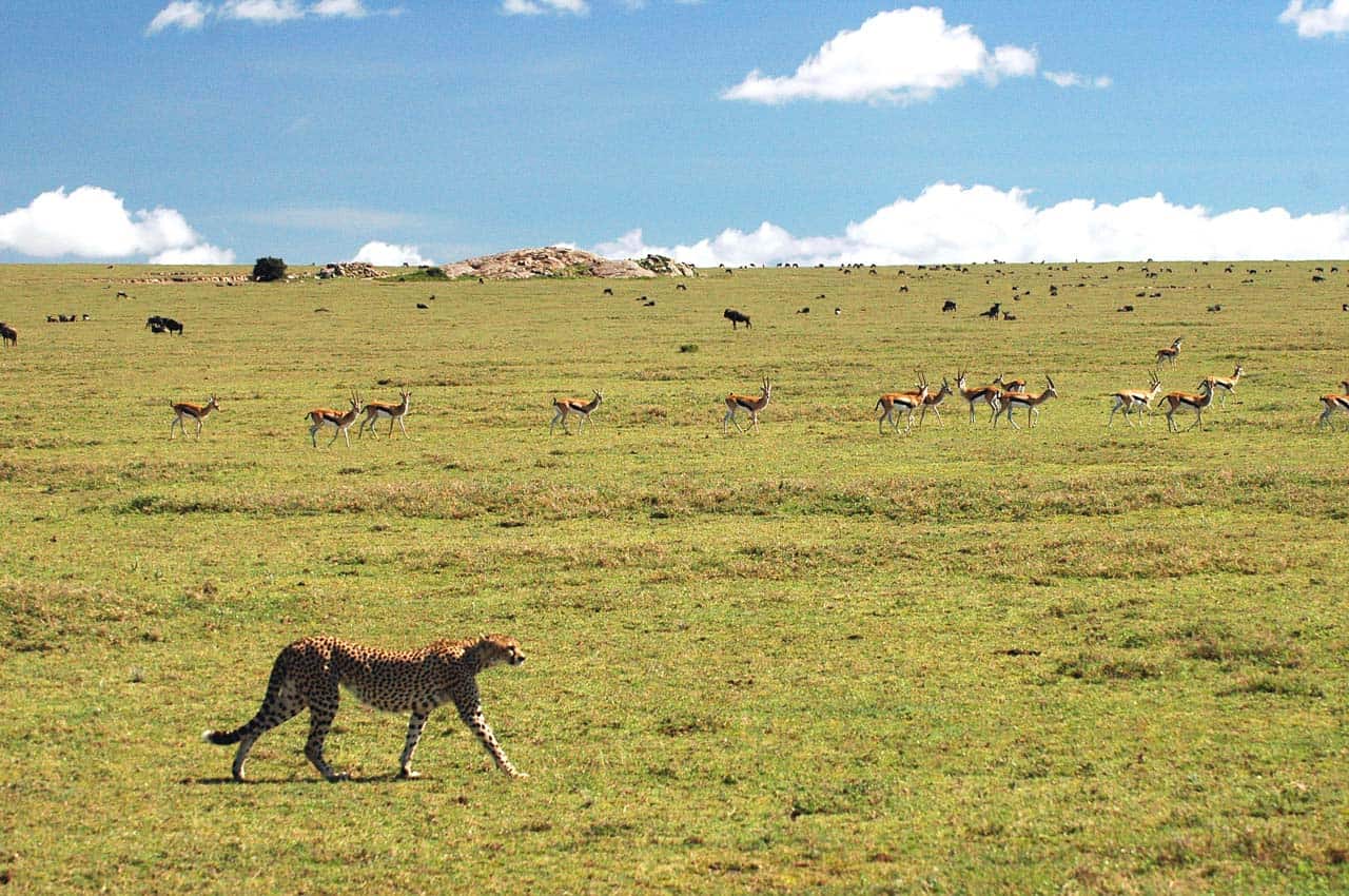 La brousse s’éveille déjà depuis une demi-heure, caressée par le soleil qui rase les plaines. Notre camp situé sur une colline domine les plaines sans fin de Serengeti, parsemées ça et là de gros rochers qui semblent être des îles. Un paysage unique que rien ne vient enlaidir. Il n’y a rien d’autre que la nature, pure, simple, immuable.