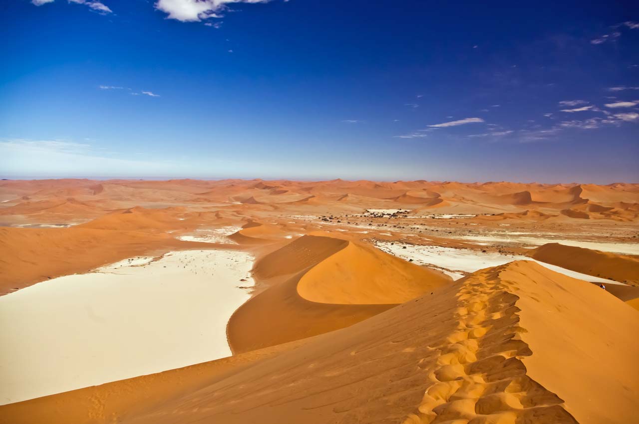 Deux longues sorties sont programmées, le matin et en fin d’après-midi, afin de monter sur la « dune 45 » (dont on dit que c’est la dune la plus photographiée dans le monde) et/ou sur « Big Daddy » la plus élevée avec ses 320 mètres, mais aussi voir Petrified dunes (Dead Vlei). Nous pouvons aussi prévoir une visite du canyon de Sesriem.