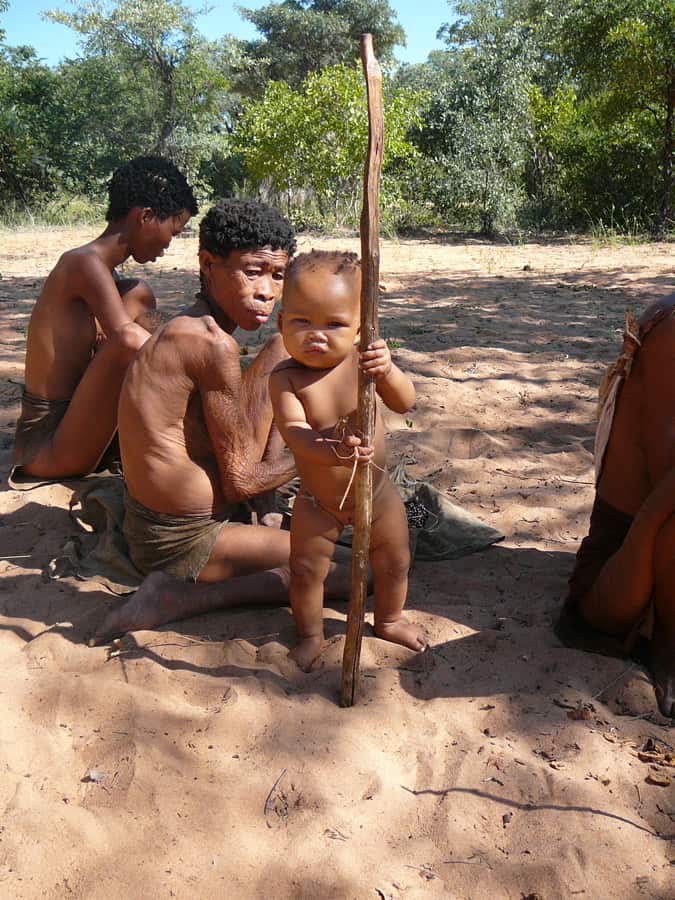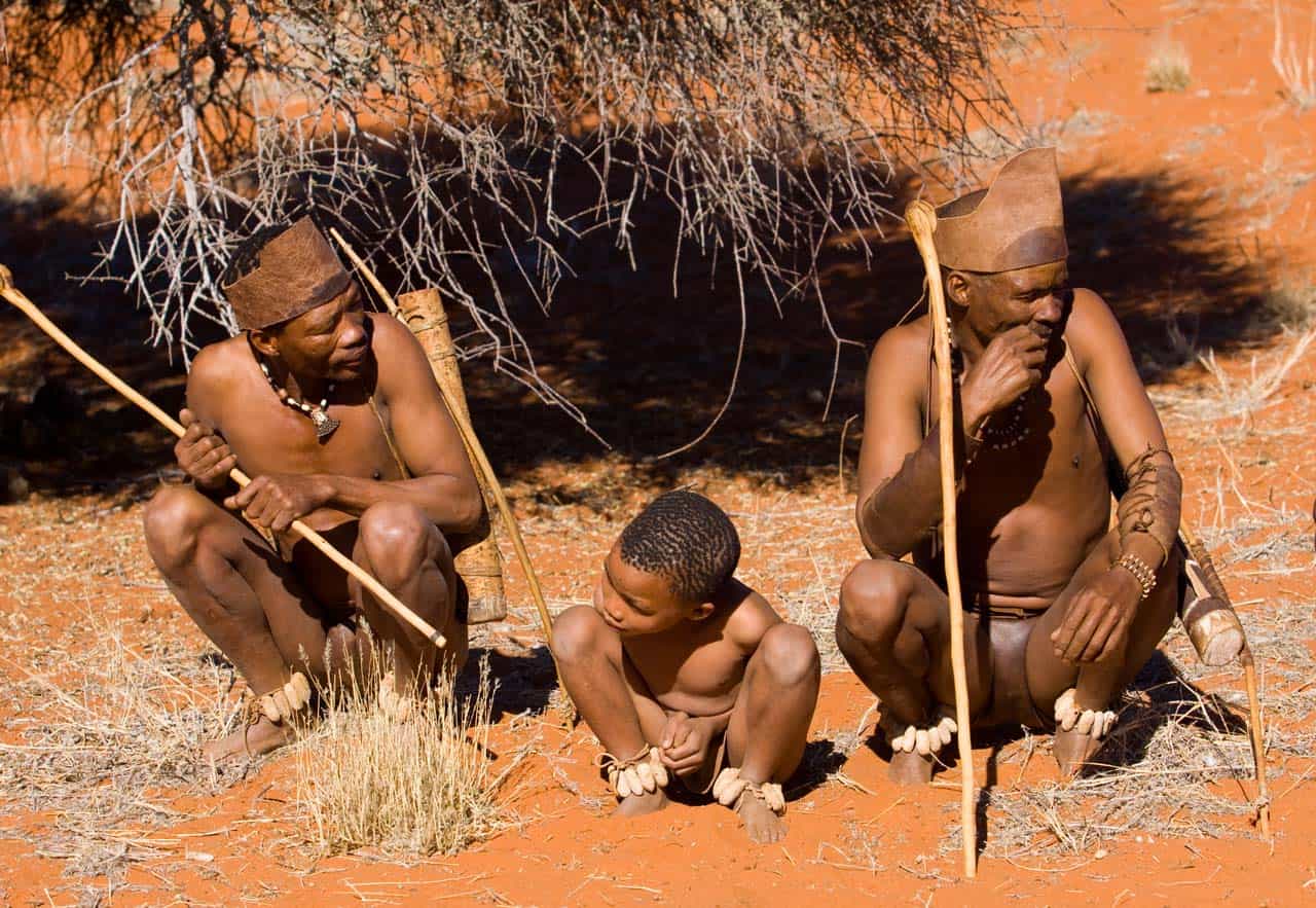 Les Bushmen sont les membres du peuple san, ce peuple désormais célèbre et rendu populaire grâce au film « Les Dieux sont tombés sur la tête ». Ces chasseurs-cueilleurs étaient les premiers résidents de l’Afrique australe. Petits de stature et clairs de couleur de peau, utilisant un langage à clics, les Bushmen ont été longtemps persécutés par les peuples bantous qui ont pris le pouvoir sur l’Afrique australe, se réfugiant sur les terres arides du Kalahari où ils étaient les seuls à pouvoir survivre.
