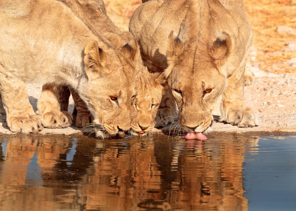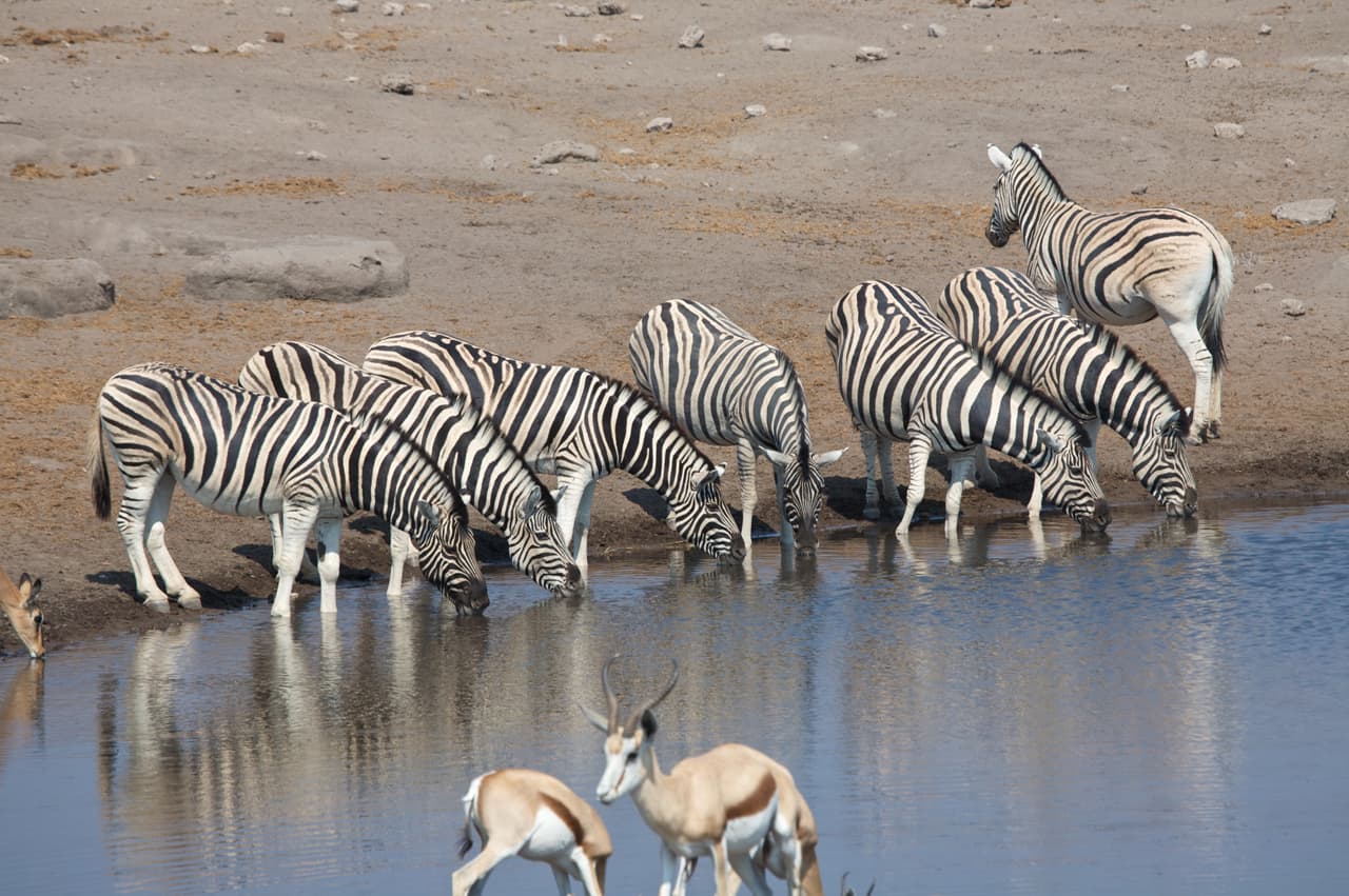 En périphérie du parc, les concessions et réserves privées, tels que Onguma, Ongava ou Hobatere, offrent également une faune riche, similaire au parc, avec parfois moins de contraintes et d’obligations de rester sur les pistes. Nous conseillons souvent de compléter l’expérience d’Etosha par un safari dans l’une de ces réserves, afin de profiter du confort et de la beauté de certains lodges.