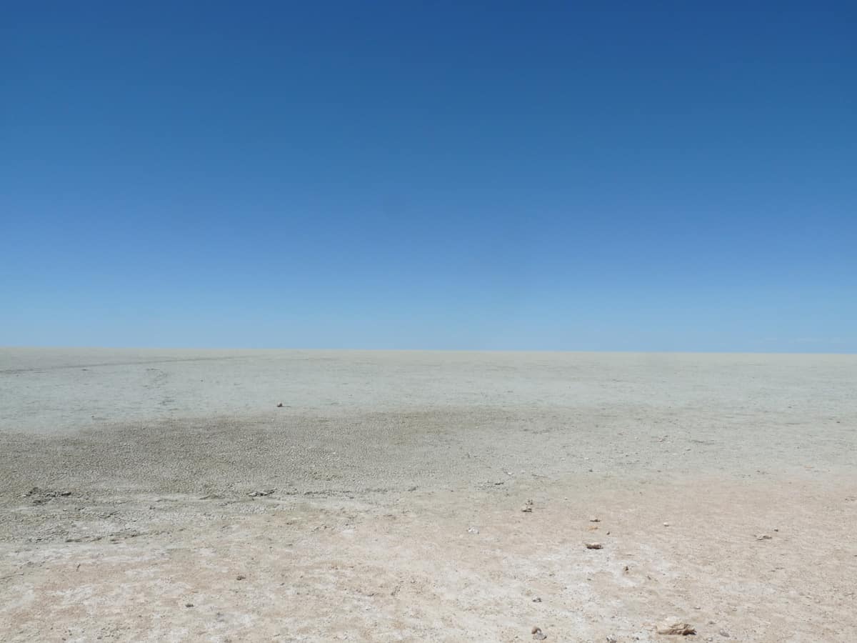 A l’Est du parc, le pan d’Etosha (4 731 km2), lac salé asséché il y a plusieurs millions d’années, se remplit d’eau à la saison des pluies. Il est alors saturé de sel, attirant des milliers d’oiseaux, notamment des flamants roses et des grues couronnées.