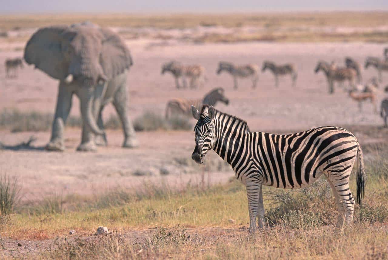Le parc national d’Etosha, d’une superficie de 22 912 km2, situé au Nord du pays, célèbre pour sa faune sauvage (114 espèces de mammifères), est une des plus grande réserve animalière d’Afrique (350 km d’Est en Ouest).