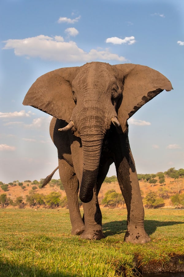 Le Parc National de Chobe, créé en 1968, bénéficie au nord de l’alimentation permanente en eau de la rivière Chobe, ce qui lui permet d’abriter de grandes concentrations animales. Il s’étend sur 11 000 km² dans le nord-est du Botswana, en continuité avec l’entité écologique du delta. Chobe abrite les plus nombreuses hardes d’éléphants d’Afrique. Les pachydermes se déplacent librement dans la zone frontalière sans clôtures ni barrières entre le Botswana, la Namibie, la Zambie et le Zimbabwe ou l’Angola. Bordé par la rivière qui lui a donné son nom, il présente également une fantastique diversité de faune et de flore. Le long des berges de la rivière Kwando, Mashi, Linyanti ou Chobe – c’est la même rivière qui change plusieurs fois de nom en fonction des régions qu’elle traverse – d’immenses troupeaux d’éléphants et de buffles viennent boire et se baigner au milieu d’une quantité ahurissante d’hippopotames !