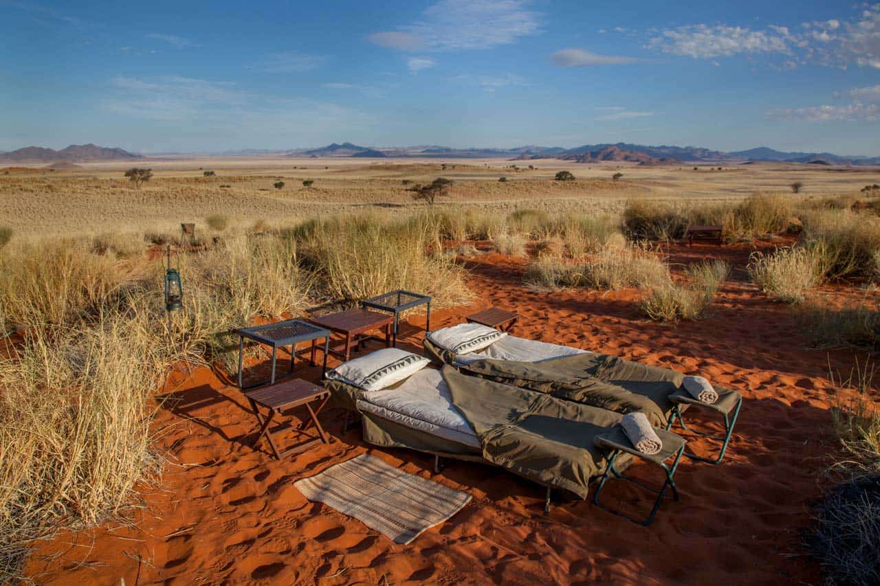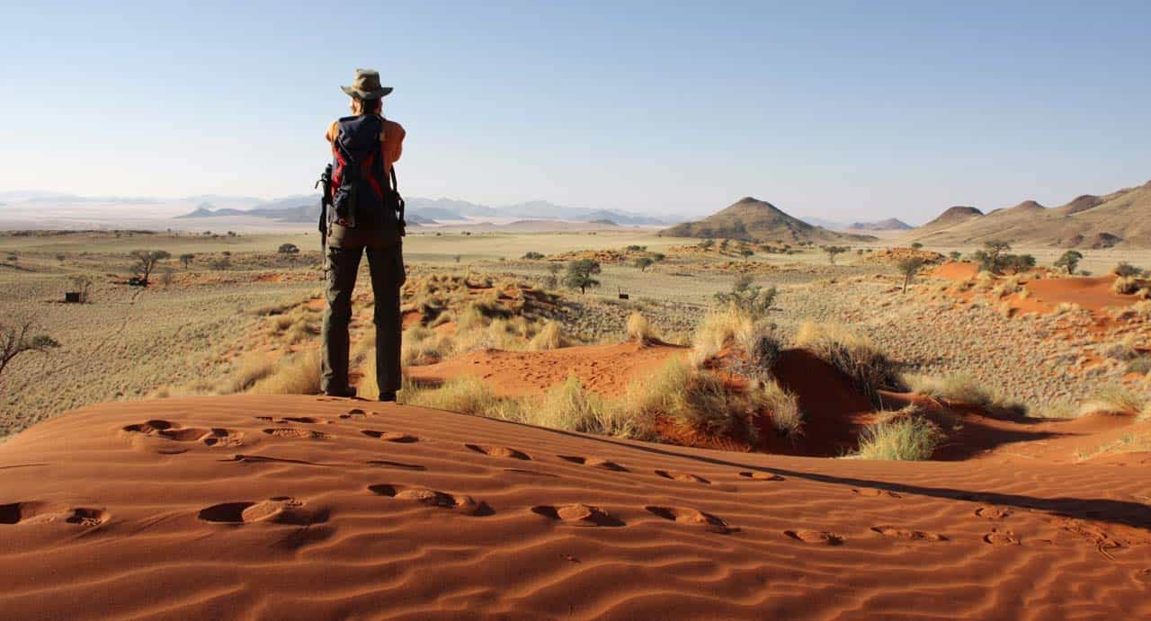 Crée en 1991 par Albi Brückner, homme d’affaires vivant à Whindhoek et amoureux de la nature, la célèbre Namib Rand Nature Reserve borde et prolonge à l’est, le parc du Namib-Naukluft de ses 140 000 ha. Elle constitue l’une des plus grandes réserves privées de l’Afrique australe. Ce paradis de terre sauvage déploie ses contrastes sur des plaines infinies de savane, traversées par une ceinture de dunes de sable rouge d’où s’érigent des formations rocheuses mythiques, tels ces massifs blocs de granit qui semble empilés par la main de l’homme : les kopjes.