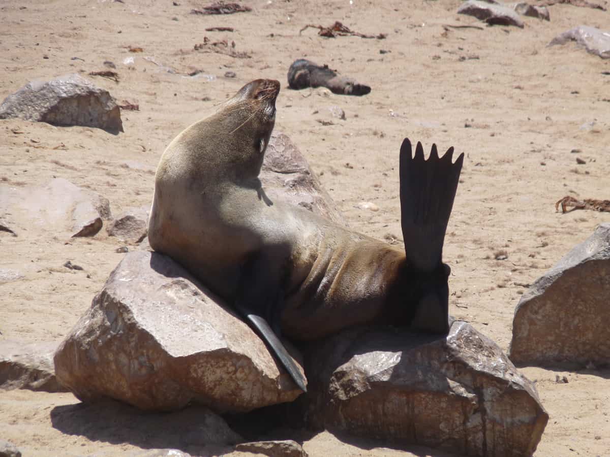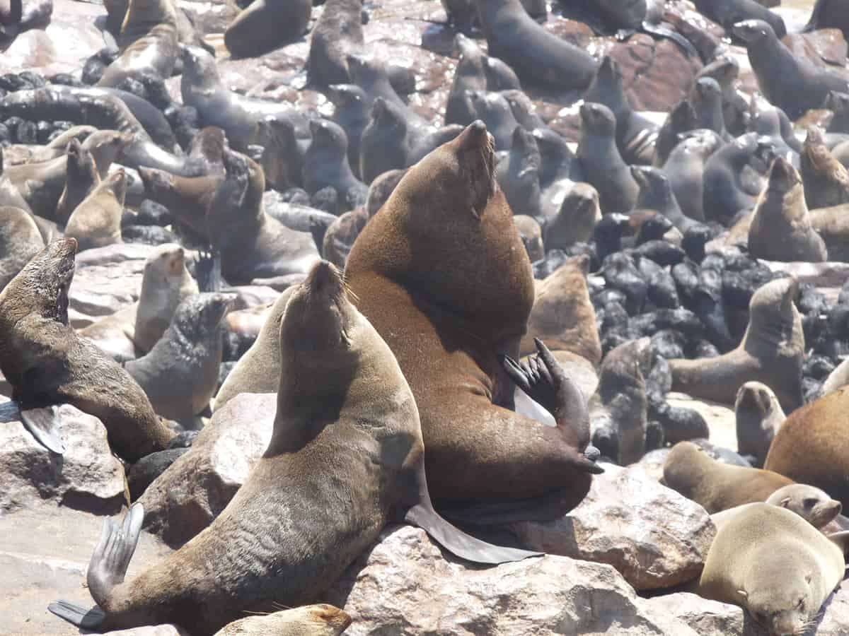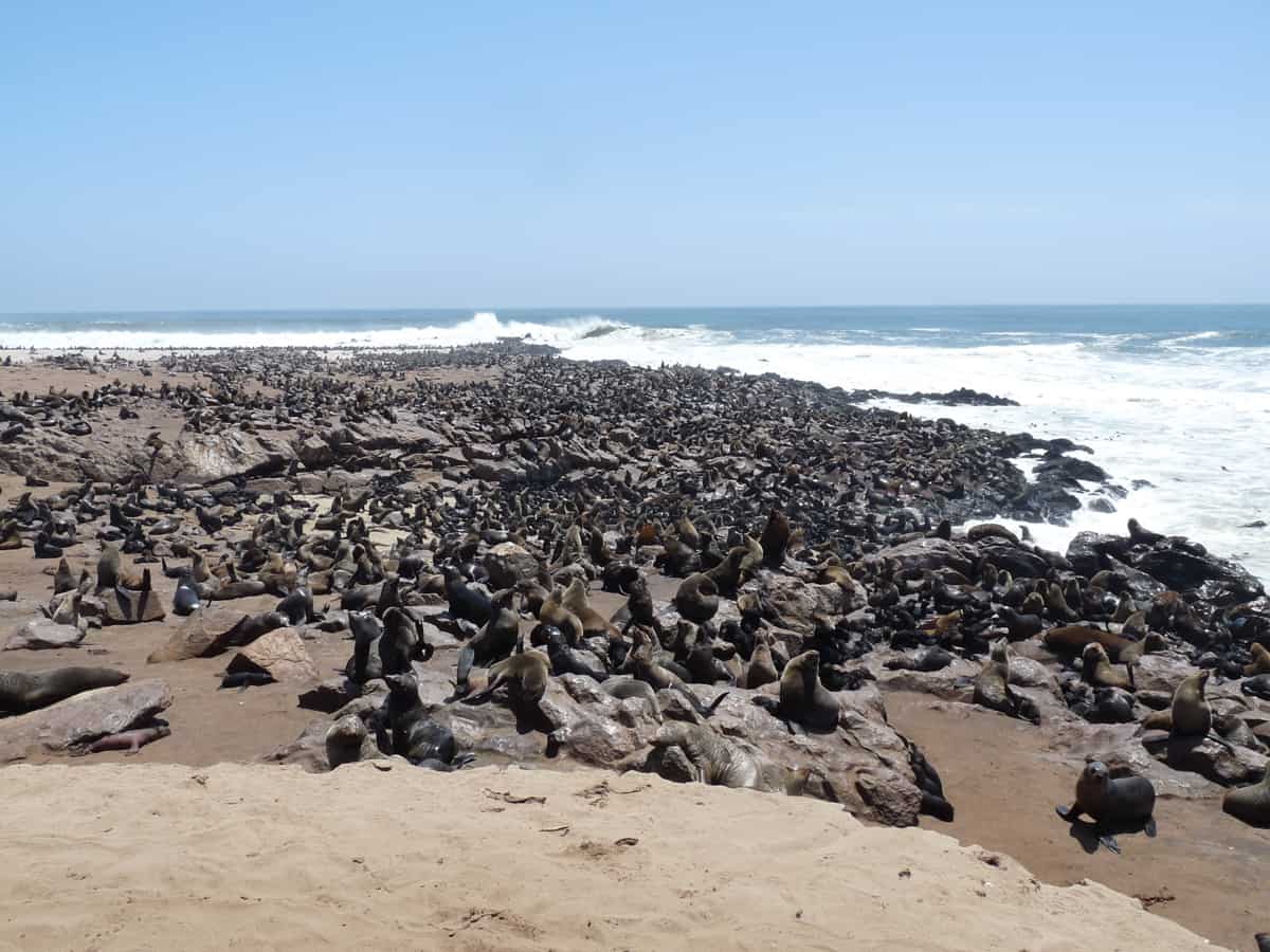 Aujourd’hui, Cape Cross abrite la plus importante des 15 colonies d’otaries à fourrure de Namibie (en Décembre, au moment de la reproduction, elle peut compter quelques 100 000 membres !). Les rochers et l’océan sont alors noirs d’otaries, vautrées le long de la côte, offrant une ambiance exclusive où le brouhaha des cris sourds et une odeur marquée, recouvrent le charme de l’air marin.